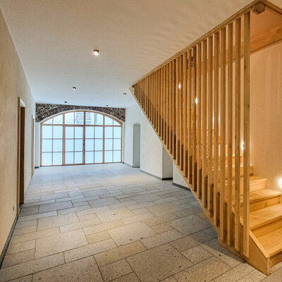 Abgerundet wird das Ensemble mit dem Garten, in welchem sich eine Terrasse befindet mit historischer Mauer ums Eck, einer Veranda, die den Zugang zur separaten Wohnung bildet, sowie einer Garage mit Nebenräumen.